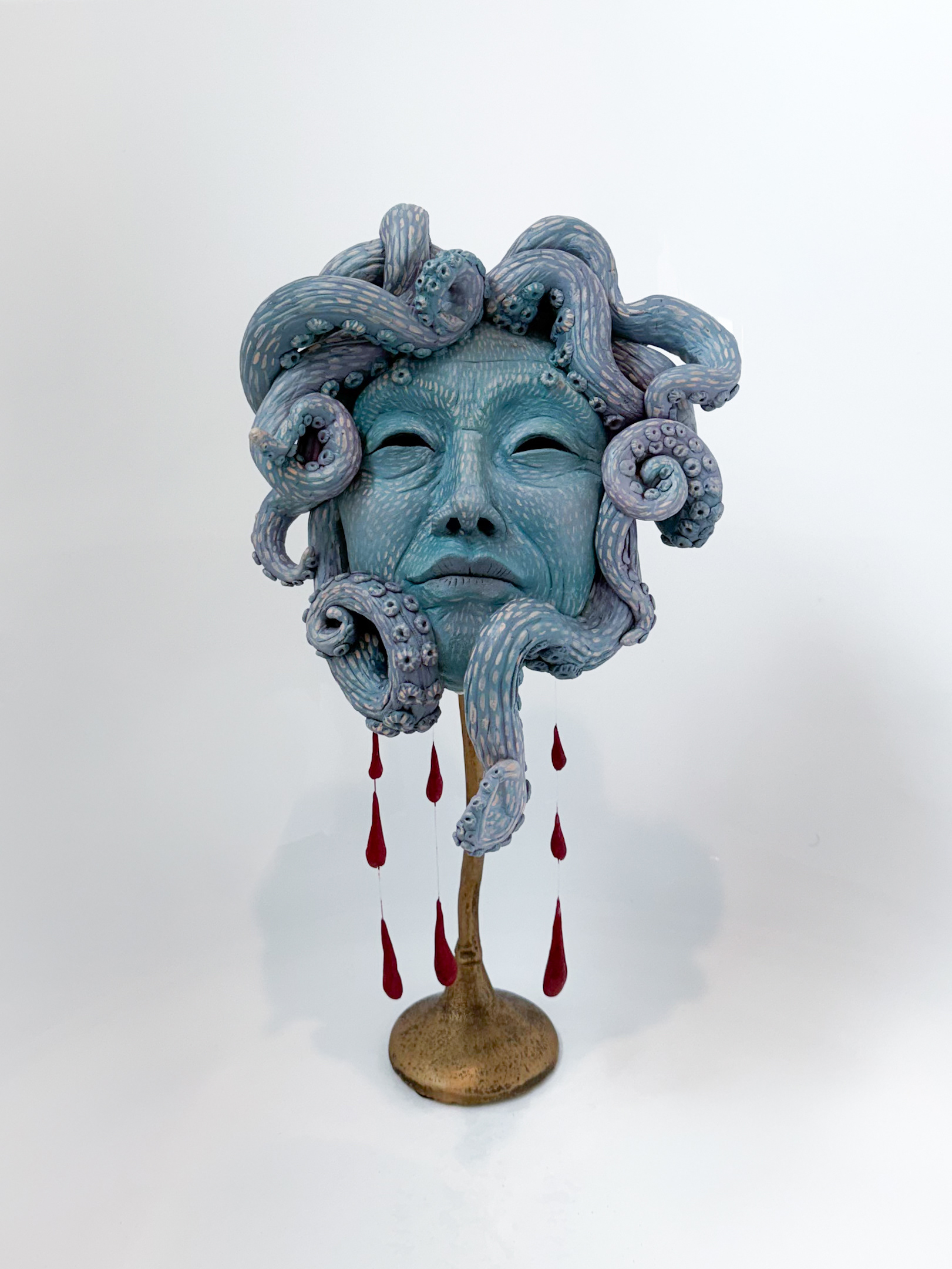 Ceramic, epoxy clay, brass armature, czech glass, watercolor, airbrush, and acrylic paint