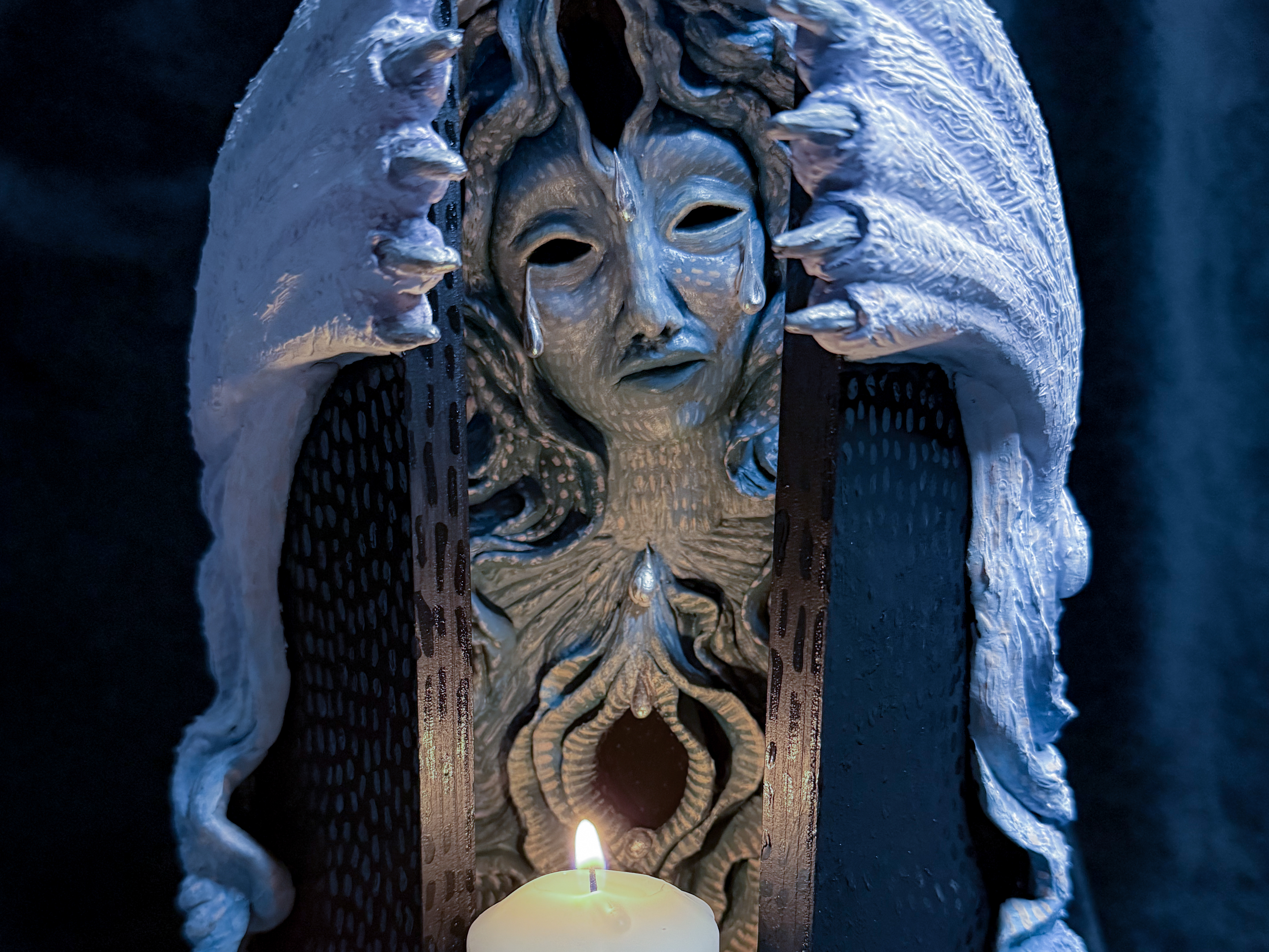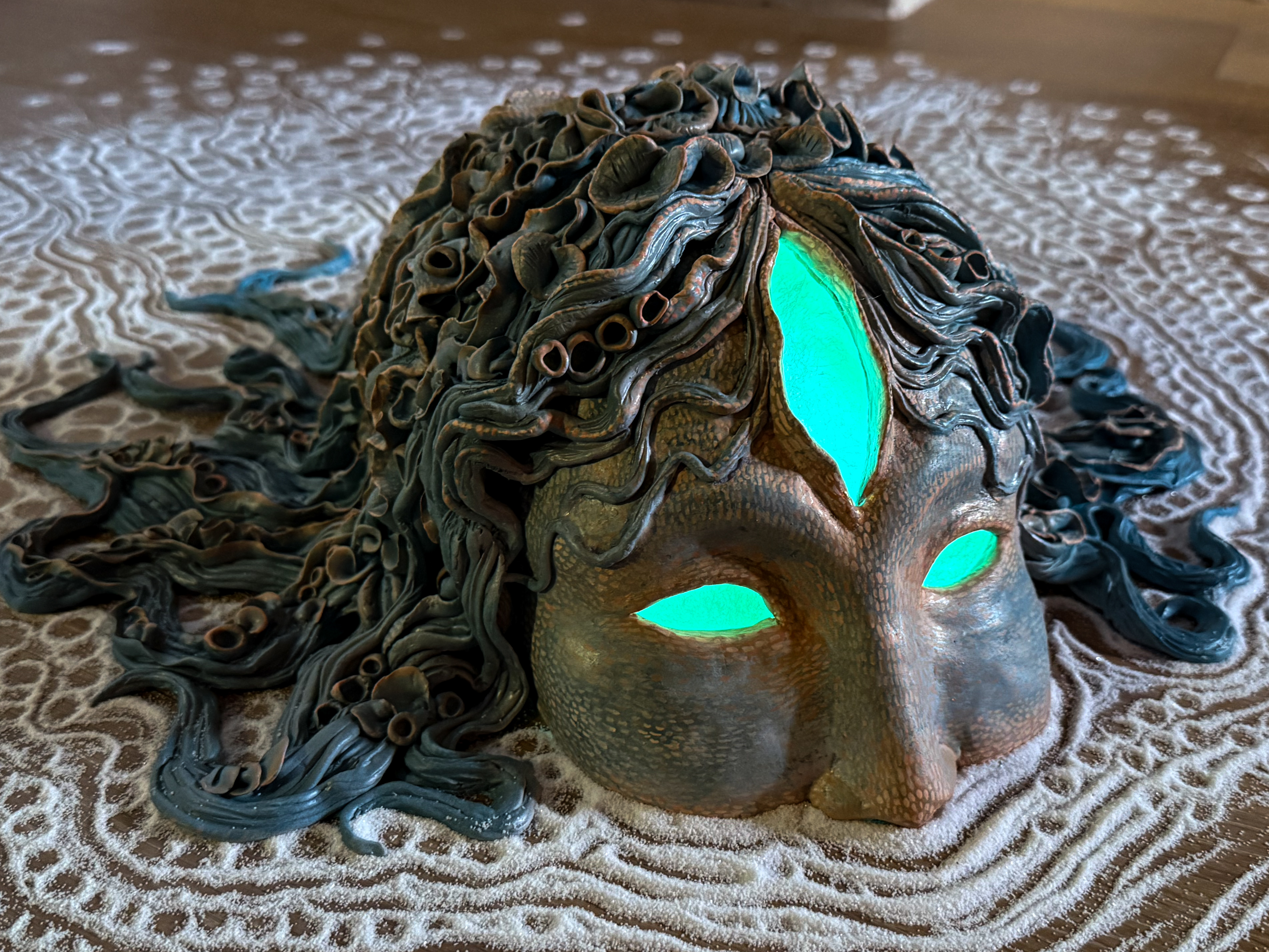 The central figure is inspired by the Latvian concept of māte, or sacred mothers that birth different aspects of the world around us. This installation helped me feel my ancestors’ concept of the māte by creating my own, depicting the sacredness of our relationship to local waters in ways both ancient and new.