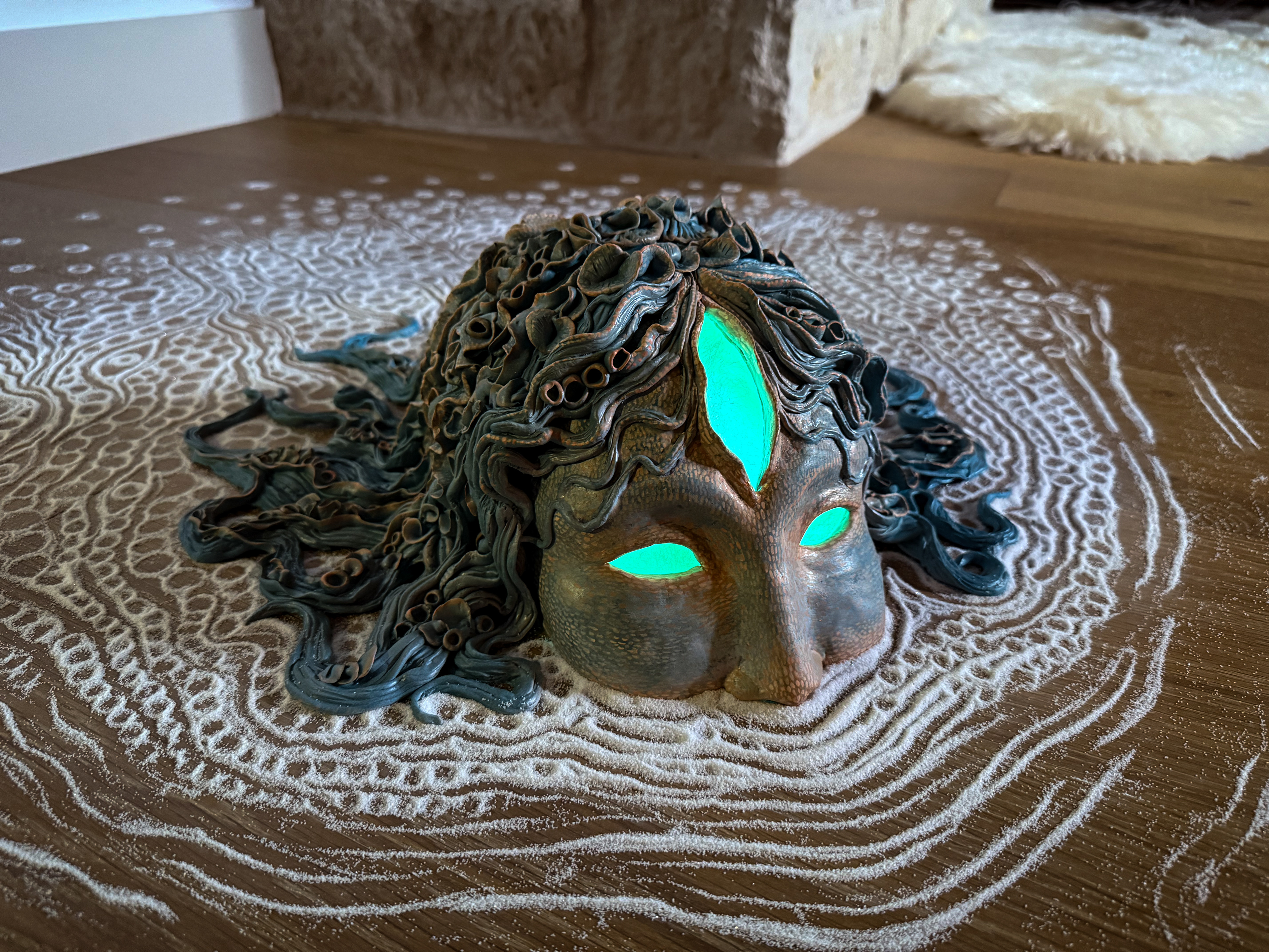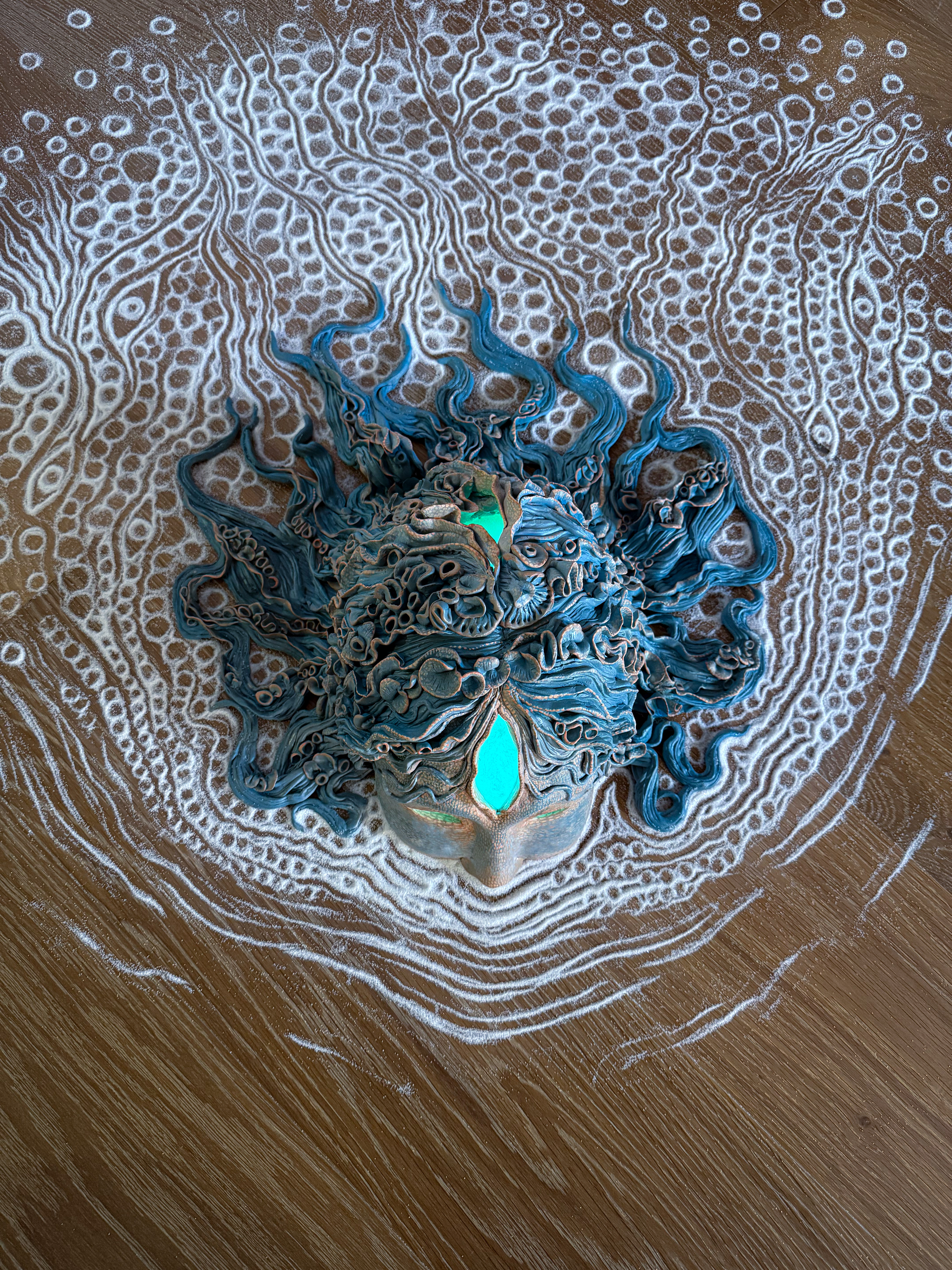 clay, epoxy clay, acrylic paint, sand, wool, LED light